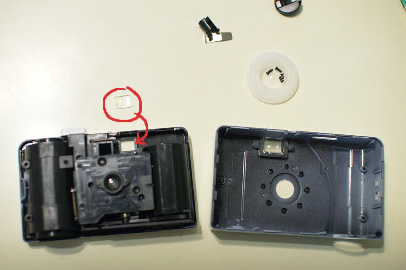 #05 拆卸完成的 white slim angel,其實跟 VIVITAR 長得一模一樣,只是掛的是 Superheadz 的品牌。小鏡片原本應該是固定在箭頭的位置上...